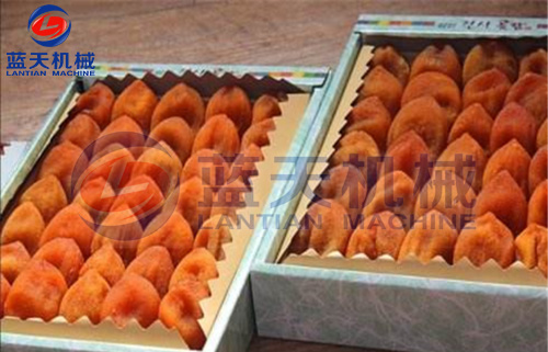 柿餅加工工藝流程:選果→去皮→裝盤→第一次烘烤→???rarr;第二次烘烤→停烤→第三次烘烤→???rarr;真空包裝→入庫。