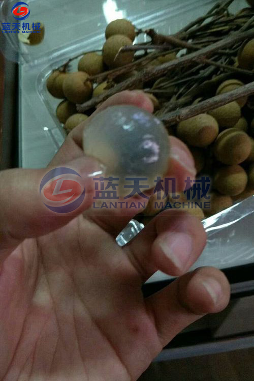 搖沙后,倒出龍眼果粒,用清水洗凈黏附在果殼表面的沙粒及磨下來的粉屑。