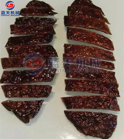 8.浸泡、烘干  將干茄瓣放在清水里浸泡20分鐘左右,讓其吸水膨脹變軟。然后用笊籬撈出,再放到烘干房內進行烘干,烘干溫度可以設定在60-65度之間。烘干至茄瓣表皮無水汁,質量比剛浸泡完時略有減少,但仍較半成品重45%——50%時為宜。浸泡的目的是為了脫去部分鹽分及茄子的苦澀味。