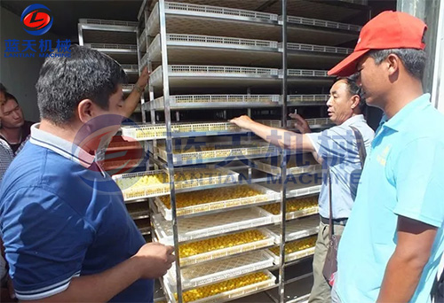 2)按照7P烘干除濕一體主機配置30立方烘干房,放入物料車6臺,次可以新鮮杏子2000斤,杏子干鮮比接近5:1。