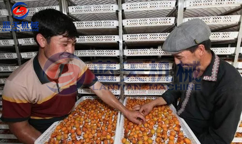 杏子和葡萄一樣,如果按照傳統晾曬制干,不僅衛生條件和杏干品質較差,杏子的損失15%30%。時間需要15天左右。用熱泵烘房進行烘干,3天左右可以烘干,杏干品質較好。比于傳統晾曬的杏干,熱泵烘干耗時短,人值守,同時烘干出的杏干品質,色澤好、價高。