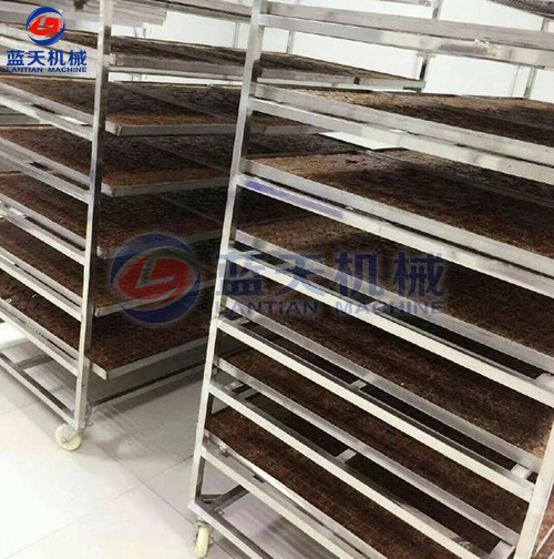 紅糖烘干工藝:將紅糖磚切成方塊狀,置入托盤中,在物料架中分層放好,注意層與層之間的距離,將物料車推入烘干房,開始啟動溫濕控制系統,在紅糖烘干機的使用過程中,第一個小時可以只升溫不排濕,因為在工作的第一階段,烘干房里面的濕度很低。第二階段設定為烘干加排濕的工作程序模式。紅糖烘干機帶有余熱回收功能。在排濕過程中的熱量會重新參與到烘干房的熱循環。排濕過程當中不會造成熱量浪費,從而降低了運行成本。