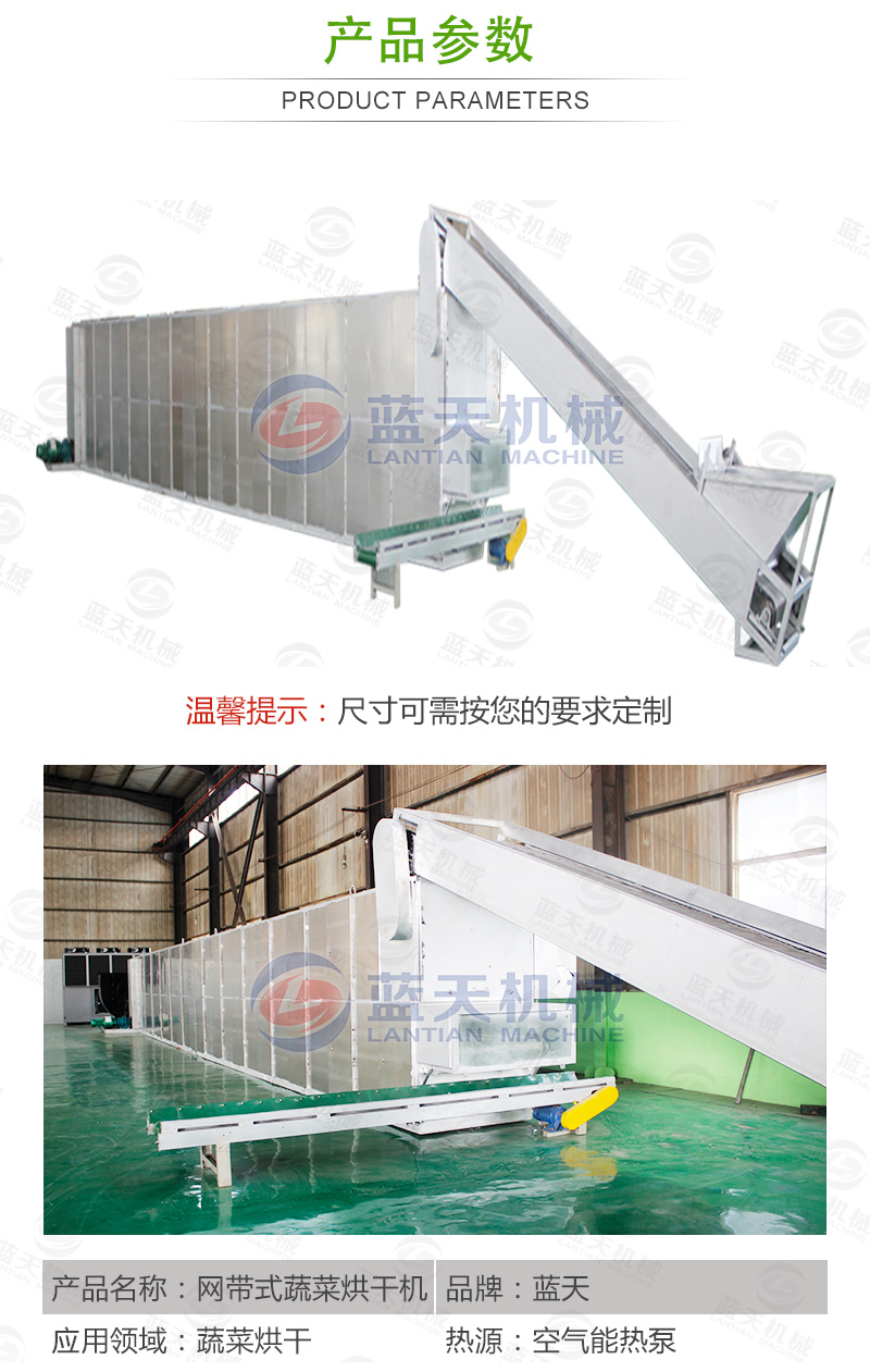 網(wǎng)帶式蔬菜烘干機(jī)可以用于:各類(lèi)蔬菜脫水烘干、水果烘干、藥材烘干、枸杞烘干、香菇烘干、辣椒烘干、木耳烘干、面食等