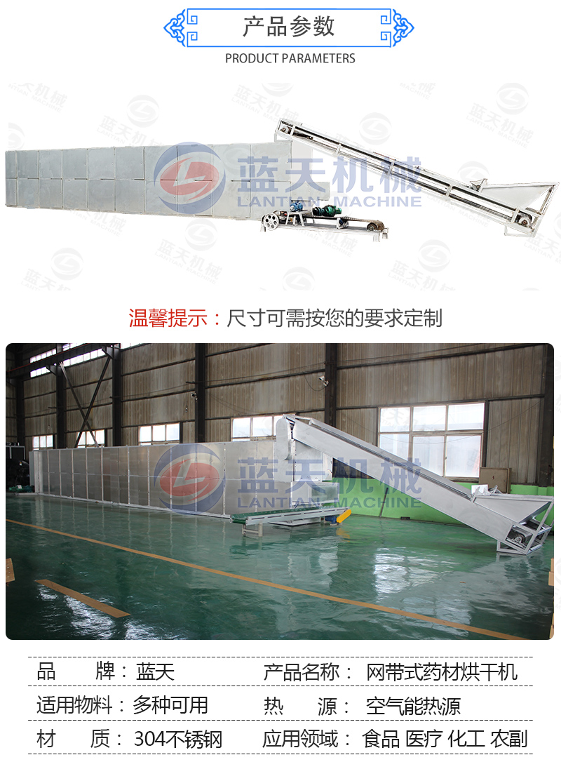 【藍天網帶式藥材烘干機:】