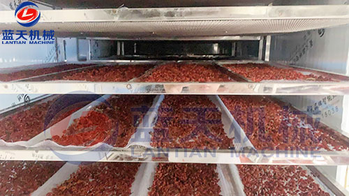 寧夏枸杞烘干機客戶烘干枸杞現(xiàn)場,客戶先把新鮮的枸杞鋪在物料托盤上,枸杞鋪好后,將物料盤推進寧夏枸杞烘干房設(shè)置好對應(yīng)的烘干參數(shù)進行烘干。